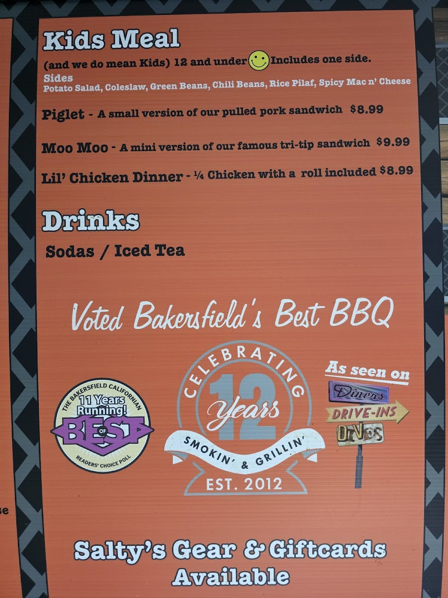 Welcome to Salty's BBQ, where flavor meets an unforgettable atmosphere. Nestled in the heart of Bakersfield at 6801 White Ln, this BBQ haven is known for its unique train-themed decor, adding a twist to your dining experience. The menu boasts a variety of hearty options, each crafted with care. From the juicy, flavorful chicken dinners favored by locals like Mike Lucero to the crowd-pleasing Salty Specials highlighted by Rodney Ackerman, there's something for everyone.